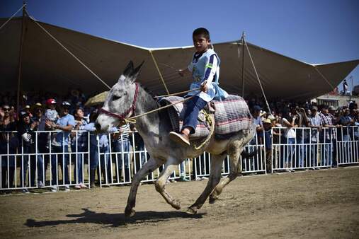 انطلق اليوم الأربعاء، مهرجان الحمار الوطنى فى بلدة أوتومبا المكسيكية، وذلك تقديرا لدوره فى العمل، ولتكريم الحيوانات التى تنقل أحمال كبيرة للمواطنين، وتساعدهم على تحقيق أعمالهم، وذلك بالتزامن مع احتفالات العالم بـ"عيد العمال".