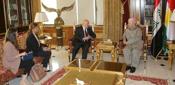 إستقبل الرئيس مسعود بارزاني، اليوم الثلاثاء في صلاح الدين، كريم أسعد أحمد خان، المساعد والمستشار الخاص للسكرتير العام لمنظمة الأمم المتحدة لشؤون التحقيق في جرائم داعش، والوفد المرافق له.