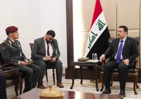 واستقبل السوادني، اليوم الأربعاء، قائد بعثة حلف شمال الأطلسي/ الناتو في العراق الفريق لوكاس شخويرس، حيث جرى بحث سبل التعاون الأمني والعسكري بين العراق ودول الحلف، في ضوء انتهاء مهمة التحالف الدولي لمحاربة داعش في العراق.