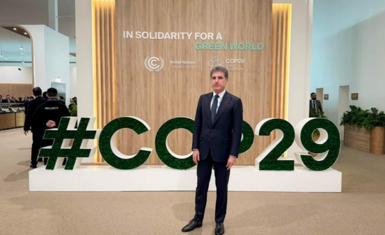 وشارك نيجيرفان بارزاني إلى جانب قادة ورؤساء العالم في مؤتمر الأمم المتحدة للتغير المناخي "COP29" والذي من المقرر أن يستمر قرابة أسبوع.
