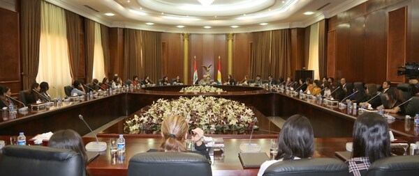 وذكر بيان صادر عن مكتب الرئيس بارزاني أنه "في مستهل الإجتماع، قدم سكرتير إتحاد نساء كوردستان، ومدير شؤون الكورد الأيزديين في وزارة الأوقاف والشؤون الدينية في حكومة إقليم كوردستان ومسؤول مكتب تحرير المختطفين والمختطفات الأيزديات في محافظة دهوك، وهديه مراد النائبة الأيزدية في برلمان كوردستان، نبذ مختصرة حول الجهود المبذولة في سبيل إنقاذ البنات والنساء الأيزديات من قبضة داعش الإرهابي، والأوضاع المعيشية الحالية للمحررات، والمساعي التي تبذل من أجل إعادتهن الى حياتهن الطبيعية".