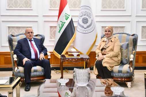 وقالت الوزارة في بيان إن الوزيرة طيف سامي محمد استقبلت اليوم وفداً من حكومة إقليم كوردستان برئاسة وزير المالية، آوات جناب نوري، وأوميد صباح رئيس ديوان المجلس وآمانج رحيم سكرتير المجلس وفارس عيسى رئيس ممثلية الاقليم وعبد الحكيم خسرو من دائرة المتابعة والتنسيق وریباز عباس محمود مستشار وزارة المالية وكوفان تحسين مدير عام المحاسبة وأبو بكر عبدالله مدير عام الموازنة ومريم عثمان مدير عام التقاعد وعبدالله رمضان معروف بصفة خبير مالي وذلك للتباحث بشأن رواتب موظفي ومتقاعدي الإقليم.