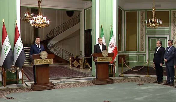 وبعد لقائه مع السوداني الذي سافر إلى طهران في وقت سابق من اليوم، أعرب بزيشكيان في مؤتمر صحفي مشترك عن أمله " بتتسارع عملية تطوير التعاون الثنائي في ضوء هذه الرحلة والثقة الطيبة بيننا أن بين الطرفين"، مشيراً إلى أنه وينبغي اتخاذ خطوات أكثر فعالية نحو التقارب بين البلدين.