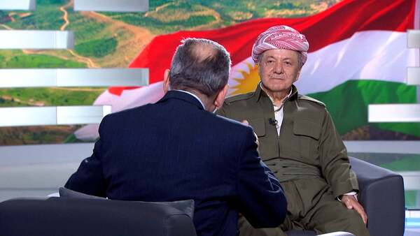 المحاور إيلي ناكوزي: فخامة الرئيس، عندنا أحد الزملاء، اسمه هامبرفان كوسة، هو كوردي سوري لاجئ سياسي في ألمانيا، تعرض للاعتقال والظلم، وهو زميل في قناة شمس، يسميك نور عيوني، كيف تفهم هذه العلاقة مع السوريين؟ هذا الحب لمسعود بارزاني؟