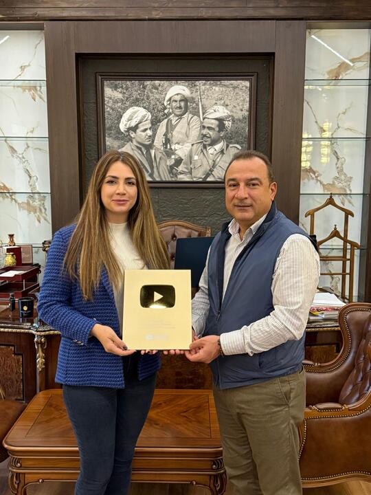 واستلم المشرف العام لمؤسسة إعلام كوردستان نينوس نمرود، درع "You Tube" الذهبي، المقدم لفضائية زاكروس.