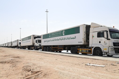 وكان مركز الملك سلمان للإغاثة والأعمال الإنسانية، أعلن في الخامس من كانون الثاني الماضي دخول أولى قوافل الجسر البري السعودي إلى سوريا عبر معبر جابر الحدودي الأردني، في إطار حملة المساعدات السعودية لسوريا.