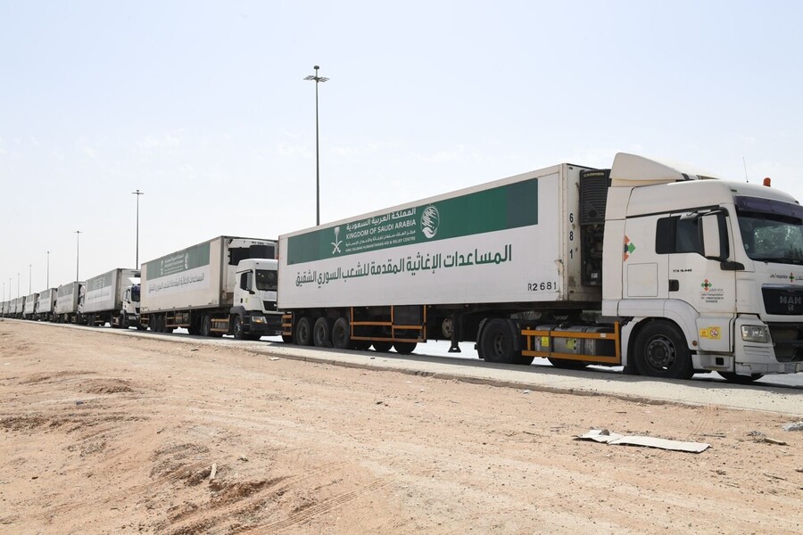 تستعد 60 شاحنة إغاثية سعودية للانطلاق إلى سوريا ضمن المرحلة الـ 3 من الجسر البري السعودي لإغاثة سوريا.