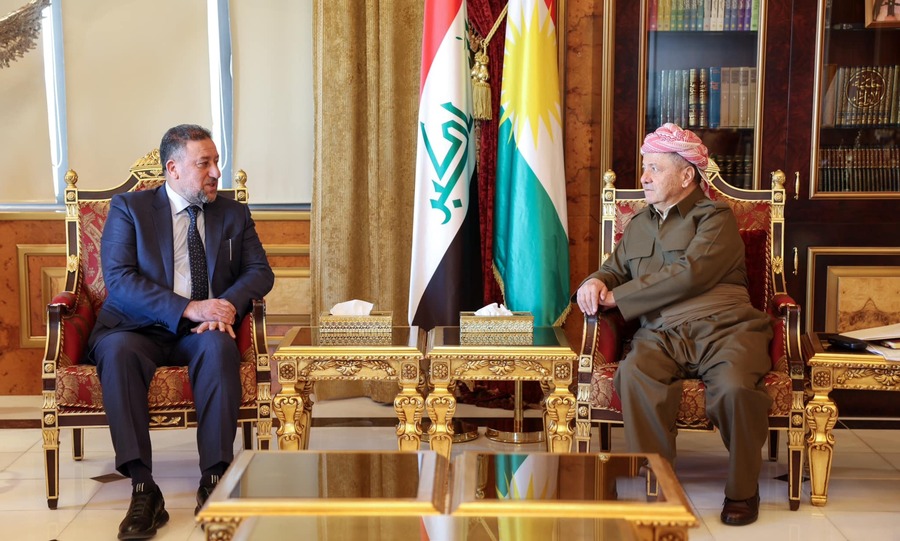 استقبل الرئيس مسعود بارزاني، اليوم الخميس ( 13 شباط 2025)، في مصيف صلاح الدين، رئيس تحالف السيادة، خميس الخنجر.