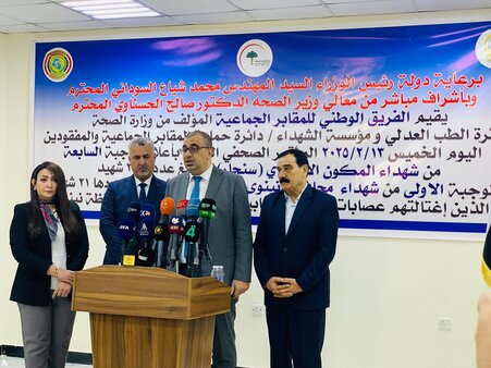 أعلنت دائرة الطب العدلي في وزارة الصحة الاتحادية ،اليوم الخميس (13 شباط 2025)، نتائج مطابقة رفات 53 شهيداً بمقبرتين في شنكال وحمام العليل في محافظة نينوى، ممن اغتالهم تنظيم داعش الإرهابي.