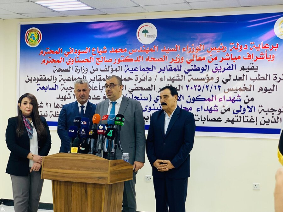 وقال مدير عام دائرة الطب العدلي، زيد علي في كلمة له خلال المؤتمر الصحفي الخاص بإعلان الوجبة السابعة من شهداء المكون الإيزيدي في شنكال والوجبة الأولى من شهداء نينوى في حمام العليل الذين اغتالتهم عصابات داعش الإرهابية أثناء سيطرتهم على المحافظة ، إنه "تم اليوم إعلان نتائج مطابقة مقبرتين للمفقودين في شنكال وحمام العليل ، إذ إن العدد السابق في سنجار كان 243 حالة ، واليوم لدينا 32 حالة ليصبح العدد الكلي للمطابقات 275 حالة مطابقة".