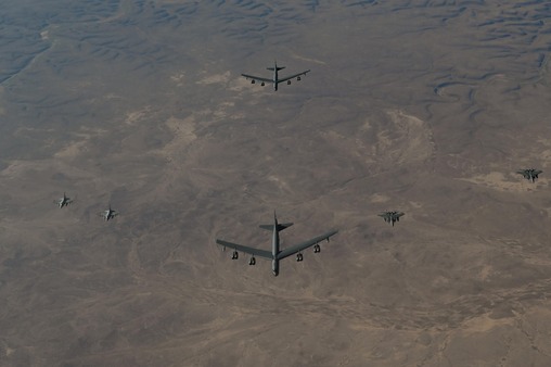- القاذفات انطلقت "بي-52" من قاعدة فيرفورد الجوية الملكية البريطانية، وحلقتا عبر أوروبا وصولاً إلى الشرق الأوسط، بمشاركة تسع دول شريكة خلال مسار المهمة.