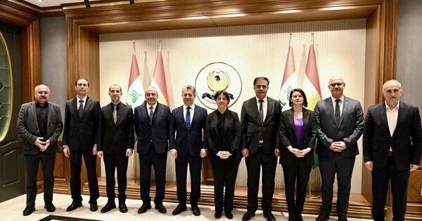 استقبل رئيس حكومة إقليم كوردستان مسرور بارزاني، اليوم الأربعاء، 19 شباط 2025، وفد إمرالي برئاسة النائبين عن حزب المساواة وديمقراطية الشعوب، سري سورييا أوندر، وبروين بولدان.