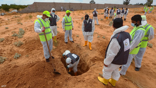 وقبل 10 أيام، أعلن مكتب النائب العام الليبي العثور على 28 جثة لمهاجرين من إفريقيا جنوب الصحراء، في مقبرة جماعية اكتشفت بمنطقة الكُفرة، خلال عملية في مكان كانت تسيطر عليه شبكة من المهربين حيث كان 76 مهاجراً محتجزين.