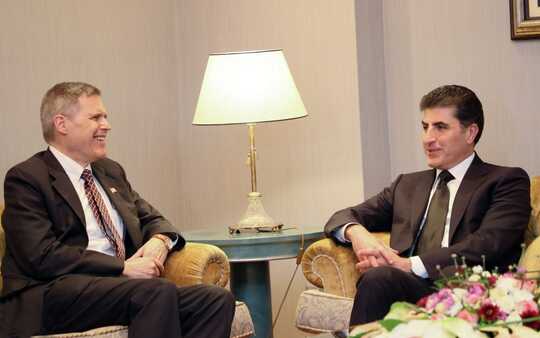 كما لفت البيان أن رئيس الإقليم نيجرفان بارزاني عبّر عن شكره لدعم ومساعدات أمريكا لإقليم كوردستان والعراق، وأكد على رغبة واستعداد إقليم كوردستان لحل المشاكل مع الحكومة الاتحادية العراقية على أساس الدستور".