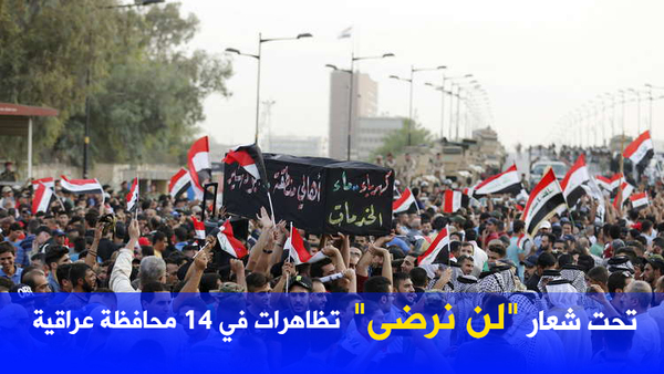 تحت شعار "لن نرضى" انطلقت تظاهرات حاشدة في 14 محافظة عراقية للمطالبة بتوفير الخدمات ومحاسبة الفاسدين وإنهاء المحاصصة السياسية ، اليوم الجمعة، وذلك تلبية لدعوة زعيم تيار الحكمة عمار الحكيم.