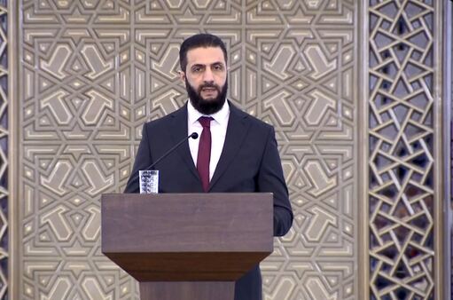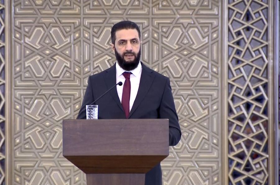 قال الرئيس السوري أحمد الشرع للمرحلة الانتقالية، أن سوريا حرّرت نفسها بنفسها ويليق بها أن تبني نفسها بنفسها، فيما حذّر من أنظمة "مستوردة" تحوّل المجتمعات إلى حقول تجارب لتنفيذ أحلام سياسية، مركّزاً على السلم الأهلي لتكون سوريا مدرسة في العيش المشترك.