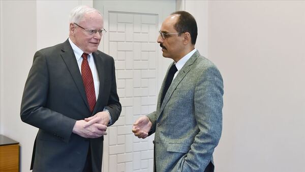 قال المتحدث بإسم الرئاسة التركية إبراهيم كالن، للمبعوث الأميركي إلى سوريا جيمس جيفري، إن إنشاء المنطقة الآمنة شرق الفرات، لن يتم إلا من خلال خطة تلبي تطلعات أنقرة، وذلك خلال اجتماع عقده كالن مع جيفري، اليوم الأربعاء، في المجمع الرئاسي التركي بالعاصمة أنقرة.