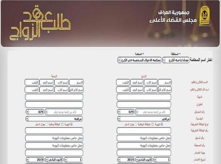 وذكر بيان صادر عن المركز الإعلامي لمجلس القضاء الأعلى إن "قسم التكنولوجيا والنظم في مجلس القضاء الأعلى أنهى تفعيل خدمة عقد الزواج الالكتروني ليبدأ العمل بها في جميع محاكم الأحوال الشخصية في بغداد".
