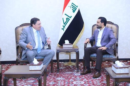 بحث رئيس مجلس النواب محمد الحلبوسي، مع سفير بريطانيا لدى العراق جون ويليكس، تفعيل جهود المجتمع الدولي والدول المانحة ومنها بريطانيا، لإعادة الإعمار والاستثمار، والعمل بالمشاريع الاستراتيجية، اليوم الجمعة.