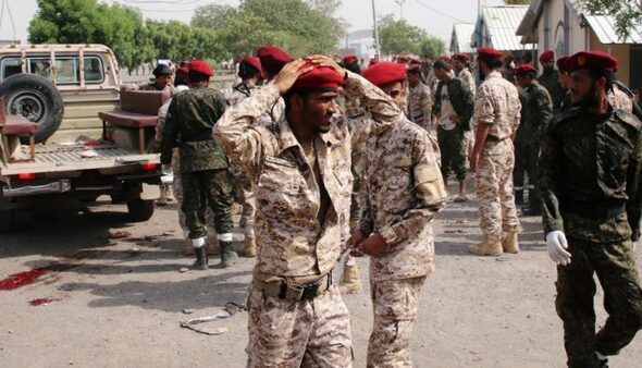 ونقلت وكالة رويترز عن أحد الشهود إن الانفجار وقع خلف المنصة التي أقيم فيها احتفال في معسكر الجلاء العسكري في منطقة البريقة في عدن".