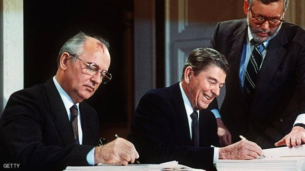 وتفاوض على المعاهدة المبرمة عام 1987 رونالد ريجان الرئيس الأمريكي حينها مع الزعيم السوفيتي ميخائيل جورباتشوف.