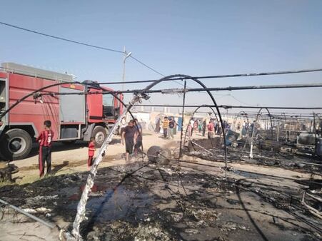 والتهمت النيران 20 خيمة للنازحين بما فيها، دون أضرار بشرية، قبل ان تتمكن فرق الإطفاء من إخمادها، والتي سارعت الى مكان الحريق بعجالة.