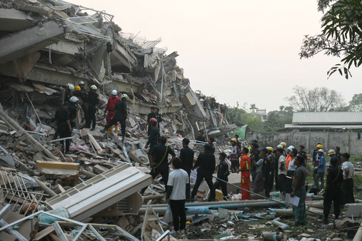 وضرب الزلزال البالغة قوته 7.7 درجة شمال غرب مدينة ساغاينغ وسط بورما بعد ظهر أمس على عمق سطحي. وبعد دقائق، ضربت هزّة ارتدادية بقوة 6.4 درجة المنطقة ذاتها.