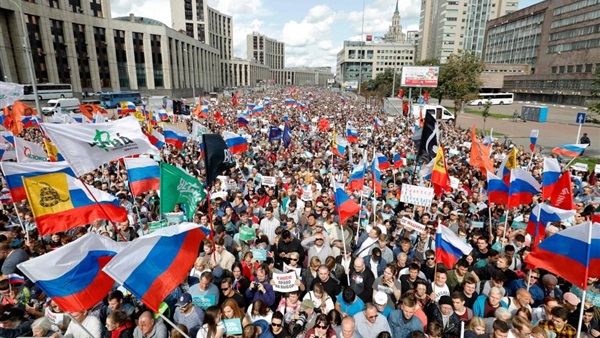 نظم عشرات الآلاف من الروس، أمس السبت احتجاجاً للمطالبة بإجراء انتخابات حرة للمجلس التشريعي لمدينة موسكو.