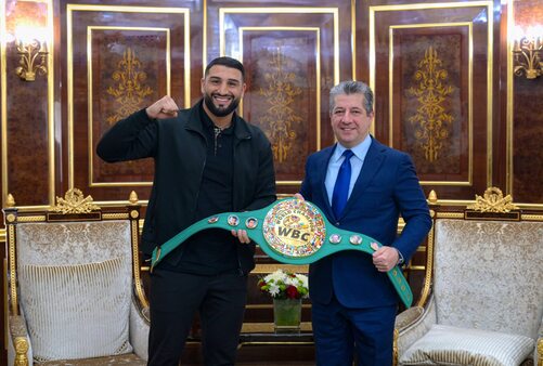 وقال مسرور بارزاني إنه استقبل اليوم "بطل العالم في الملاكمة، الكوردي الشهير السيد عكيد كابايل".