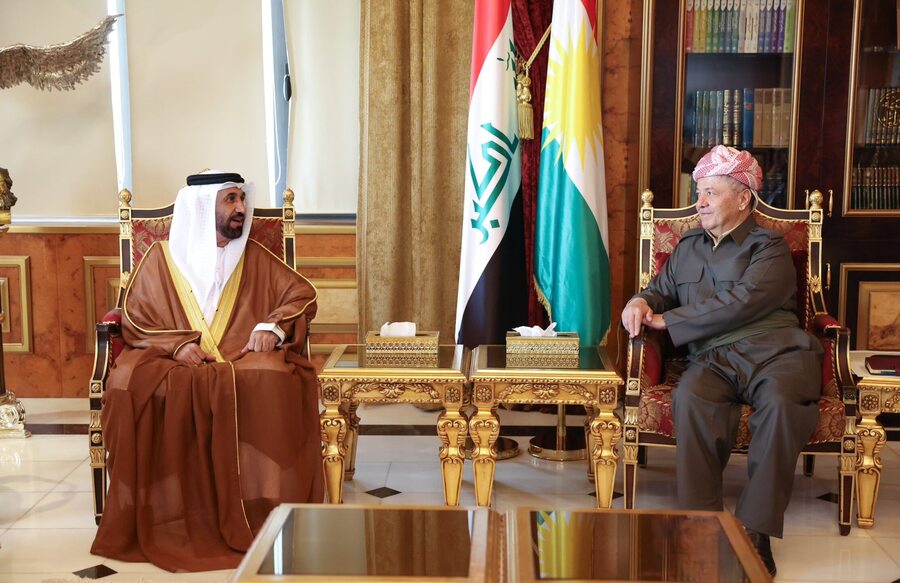 استقبل الرئيس مسعود بارزاني، اليوم الثلاثاء، 22 نيسان 2025، في مصيف صلاح الدين، محمد أحمد اليماحي، رئيس البرلمان العربي والوفد المرافق له.