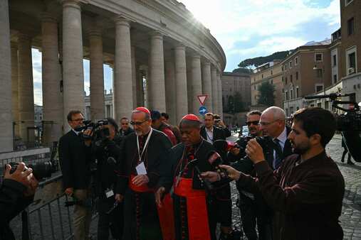 وفي مشهد فوضوي، وجه الصحفيون الأسئلة للكرادلة بشأن الحالة السائدة في الداخل وما إذا كانوا متحدين في الرأي، ومتى سيبدأ المجمع المغلق.