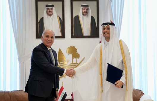 التقى نائب رئيس مجلس الوزراء ووزير الخارجية العراقي ، فؤاد حسين، اليوم الاثنين (5 أيار 2025)، رئيس مجلس الوزراء ووزير الخارجية القطري، الشيخ محمد بن عبدالرحمن بن جاسم آل ثاني، في مقر وزارة الخارجية في الدوحة، حيث سلّم دعوة رسمية لأمير قطر لحضور القمة العربية المقرر عقدها في بغداد خلال الشهر الجاري.