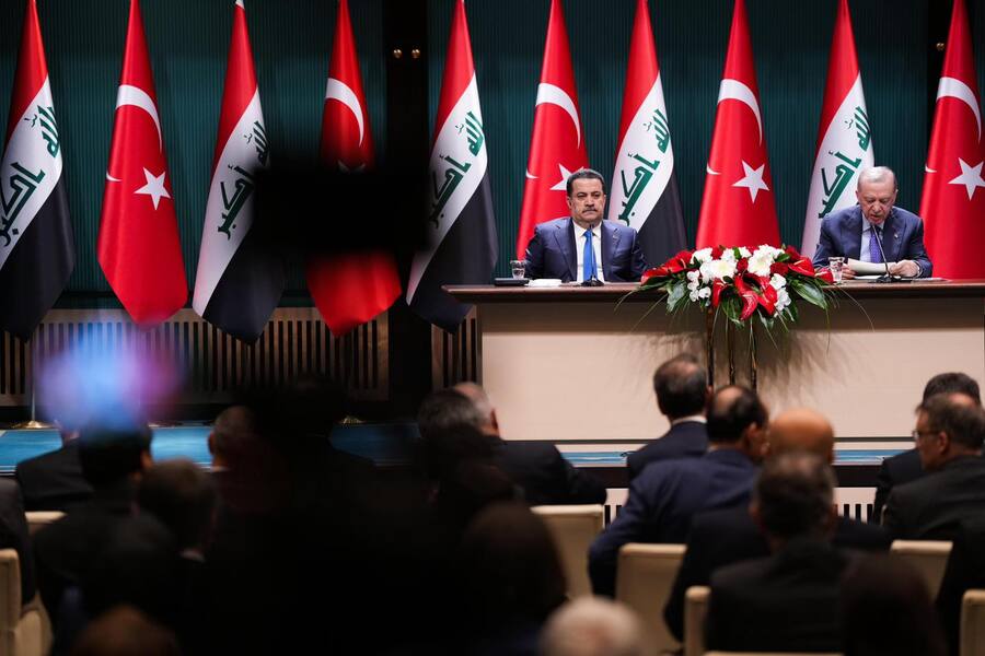 وقال السوداني في مؤتمر صحفي مشترك مع الرئيس التركي رجب طيب أردوغان الذي عُقد في أنقرة اليوم الخميس، "تربطنا مع تركيا روابط الجيرة والمصالح الجامعة والتاريخ، والعلاقات الاجتماعية والدينية، وزيارتنا تأتي امتداداً واستكمالاً لزيارة الرئيس التركي إلى بغداد العام الماضي".