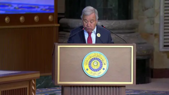 أكد الأمين العام للأمم المتحدة، أنطونيو غوتيريش، في كلمته خلال القمة العربية المنعقدة في العاصمة العراقية بغداد، اليوم السبت (17 أيار 2025)، أن "حل الدولتين هو السبيل الوحيد لتحقيق سلام مستدام في الشرق الأوسط"، مشدداً على أن ضمّ الأراضي الفلسطينية وتوسيع المستوطنات الإسرائيلية هي إجراءات غير قانونية بموجب القانون الدولي.