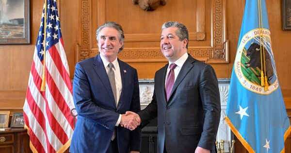 جاء ذلك خلال اجتماع جمع رئيس حكومة إقليم كوردستان مسرور بارزاني، اليوم الخميس 22 أيار 2025، بوزير الداخلية الأمريكي دوغ بورغوم.