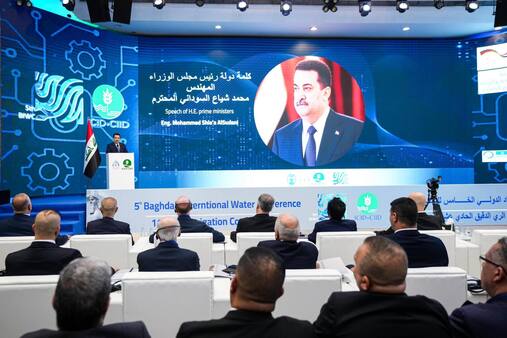 وحيّا رئيس الوزراء، "جهود القائمين على هذا المؤتمر، الذي يؤكد الاعتماد على الشراكة، والتنمية، لتكونا مُنطلقاً لمواجهة المشكلات والتحديات في مجال المياه وتأمينها"، مبيناً "اعتماد العراق خلال العامين المنصرمين حلولاً تكنولوجية، لمعالجة تراجع الموارد المائية، كما حيّا جهود القائمين على استضافة بغداد ولأول مرة (مؤتمر الرّي الدقيق) بنسخته الـ11، الذي تنظمه اللجنة الدولية للرّي والبزل، وهو فرصة استراتيجية لتطوير قدرات الحوكمة في مجال إدارة المياه، والزج بالذكاء الاصطناعي لدعم تجربة العراق الحديثة في التحوّل الرقمي، والاستفادة من الخبرات العالمية في هذا الشأن".