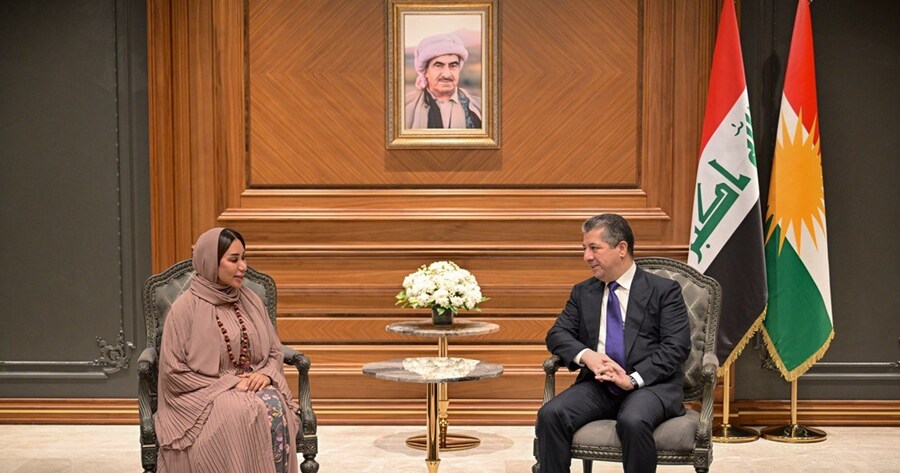 استقبل رئيس حكومة إقليم كوردستان مسرور بارزاني، اليوم الاثنين (16 حزيران 2025)، القائمة بالأعمال في القنصلية العامة لدولة الإمارات العربية المتحدة لدى الإقليم، شيخة بشير فرحان.