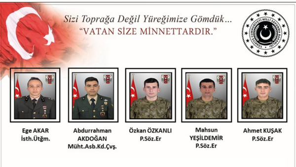 من جهته أعرب الرئيس التركي رجب طيب أردوغان، عن حزنه العميق إزاء مصرع الجنود، متمنياً الشفاء العاجل لرفاقهم الذين يخضعون للعلاج.