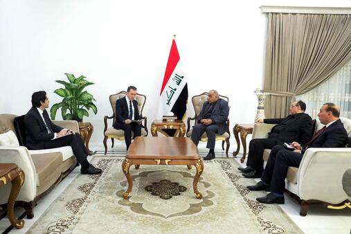 وأضاف "جاء ذلك خلال استقباله اليوم سفير الجمهورية التركية في بغداد السيد فاتح يلدز"، حيث تم بحث "ملفات التعاون في ملفات الاقتصاد والمياه والإعمار" .