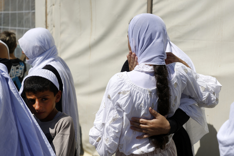 في مكان آخر، يتعانق عدد من الرجال. بجانبهم، يقف طفل سوري درزي يلوّح بعلم إسرائيلي صغير. ويقول والده الذي رفض الكشف عن اسمه، إنّه يعيش في قرية حضر المجاورة في سوريا. ويضيف أنّه قضى الساعات القليلة الماضية مع أقاربه في مجدل شمس على الجانب الإسرائيلي.