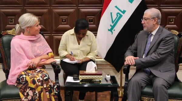 ودعا الحداد الأمم المتحدة الى "استمرار الدعم والمشورة للمساعي الرامية في سبيل إعادة بناء وإعمار المدن المحررة وتأمين الاستقرار في عموم البلاد"، وذلك خلال إستقباله اليوم الأربعاء في مكتبه، الممثلة الخاصة للأمين العام للأمم المتحدة في العراق جينين هينيس بلاسخارت والوفد المرافق.
