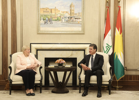 بحث نيجيرفان بارزاني، رئيس إقليم كوردستان، مع كريستيانة هومان، سفيرة جمهورية ألمانيا الاتحادية لدى بغداد، الوضع في العراق وكوردستان، والتطورات في سوريا بشكل عام.
