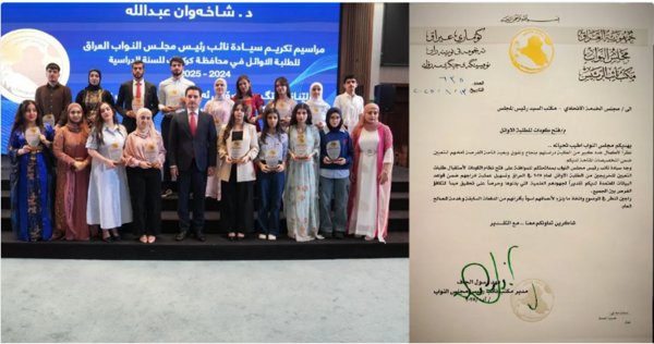 عبدالله وبحسب بيان صادر عن مكتبه الإعلامي، أكد خلال حفل تكريم الطلبة الأوائل في محافظة كركوك "على الحكومة الاتحادية الاستفادة واستثمار هذه الطاقات والعقول النيرة لخدمة الوطن".