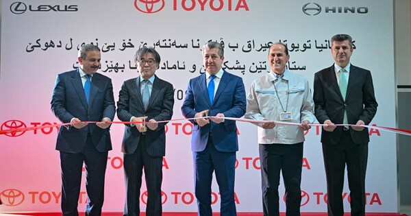في إطار دعمه للقطاع الخاص وتعزيز الشراكات الدولية، دشن رئيس حكومة إقليم كوردستان مسرور بارزاني، اليوم السبت 20 أيلول 2025، مركز الفحص والتجهيز التابع لشركة تويوتا العالمية في محافظة دهوك، وذلك بحضور السفير الياباني لدى العراق آكيرا إندو.