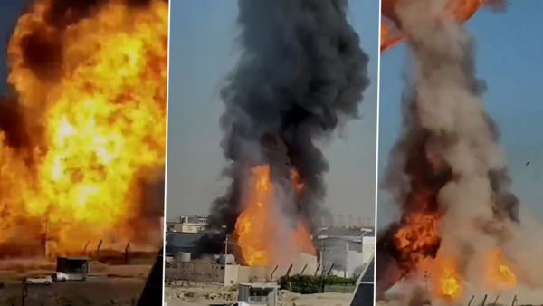 وارتفعت ألسنة النيران وأعمدة الدخان إلى السماء، أعقاب دوي انفجار كبير وقع صباح اليوم في محطة الوقود الواقعة بحي فرمانبران (جنوب شرق المدينة).
