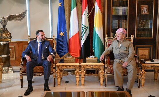 استقبل الرئيس مسعود بارزاني، اليوم الأربعاء، 8 تشرين الأول 2025، في بيرمام، نيكولو فونتانا، سفير إيطاليا لدى العراق، والوفد المرافق له.