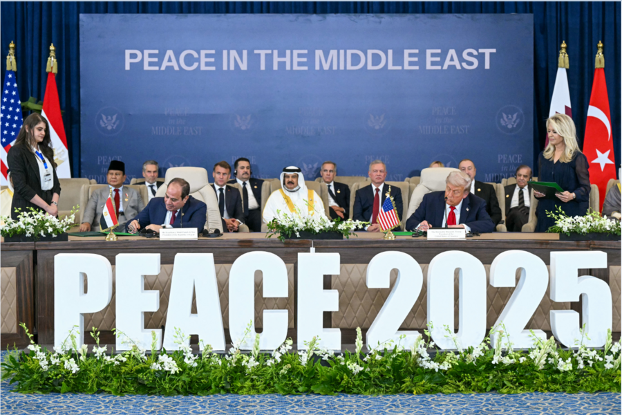 وأعلن ترامب في قمة شرم الشيخ حول غزة أنه بإعلان انتهاء الحرب في قطاع غزة تم تحقيق "سلام في الشرق الأوسط".