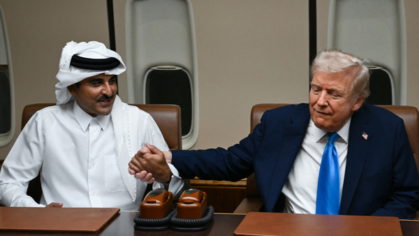 التقى الرئيس الأمريكي دونالد ترامب على متن الطائرة الرئاسية السبت، أمير قطر ورئيس حكومتها لمناقشة وقف إطلاق النار في قطاع غزة، وذلك خلال توقّف في قطر في طريقه الى آسيا.