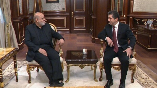 بحث رئيس حكومة إقليم كوردستان مسرور بارزاني خلال استقباله سفير الجمهورية الإسلامية الإيرانية لدى العراق ايرج مسجدي العلاقات بين اربيل وطهران وسبل تعزيزها.