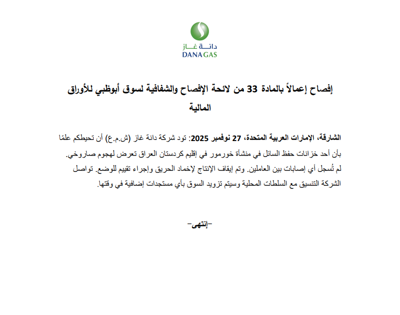 نص بيان دانا غاز: